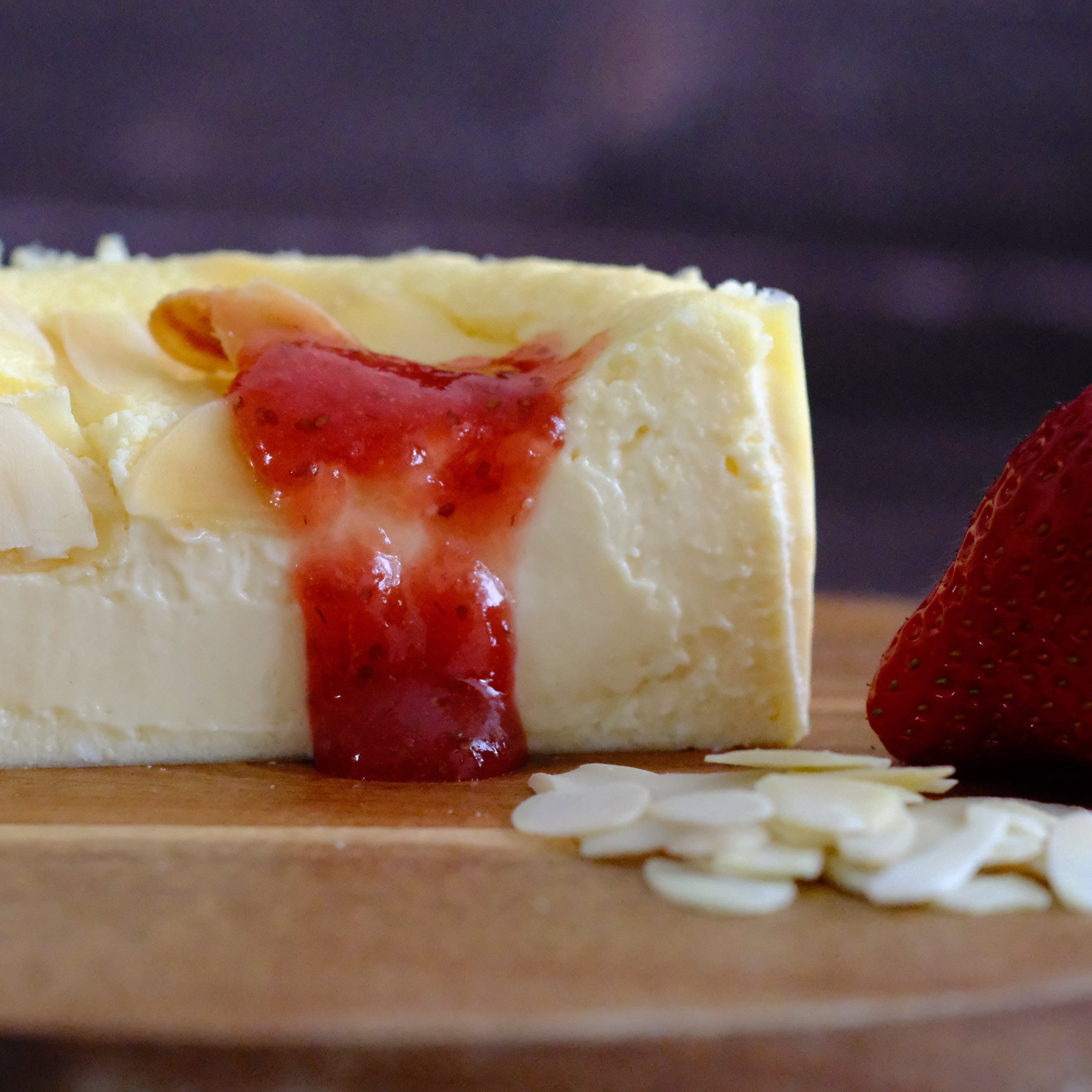 【ホワイトデー限定商品】ホワイトチョコレートとアーモンドのバスクチーズケーキ浦河産すずあかねとイチゴのリキュールのソース添え 9cm